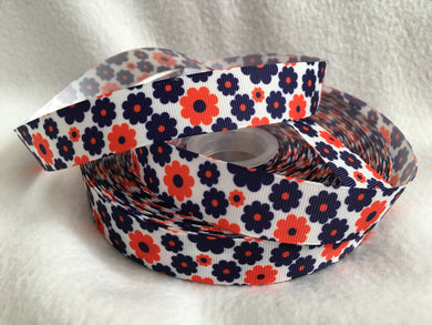 Ribbon by the Yard - Flower Ribbon - Orange and Blue Flowers